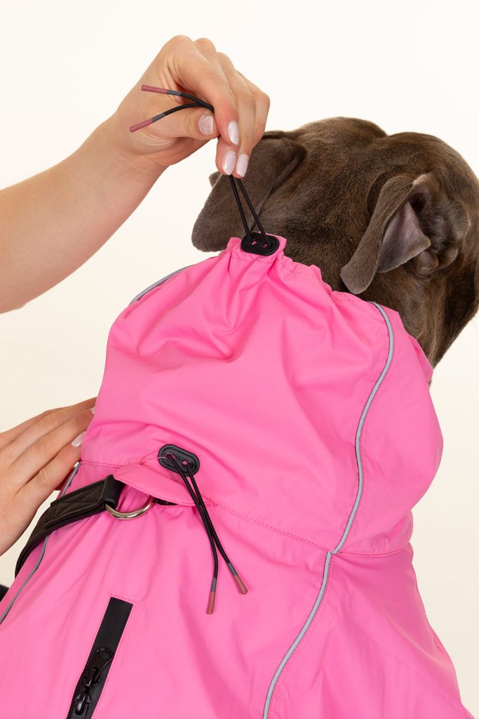 Einfaches An- und Ausziehen des pawberry Hunde-Regenmantels Rainstormer