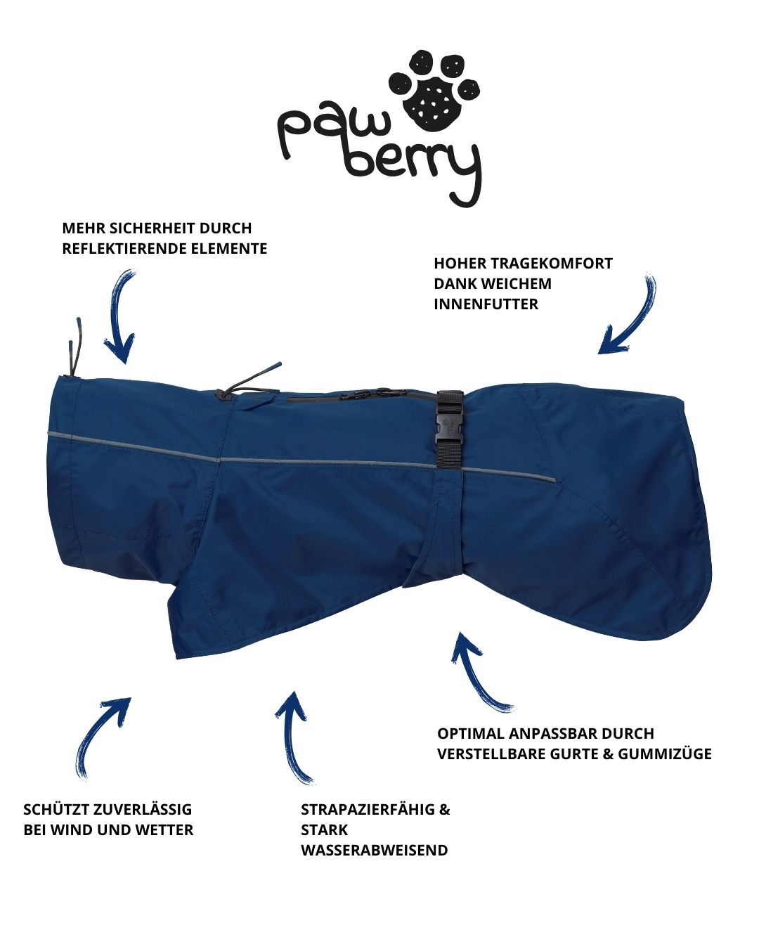 Der pawberry Hunde-Regenmantel Rainstormer vereint Funktionalität mit durchdachtem Design – und zeigt, dass Outdoor-Schutz auch stylisch sein kann. Seine wichtigsten Funktionen und Eigenschaften haben wir hier für dich zusammengestellt: